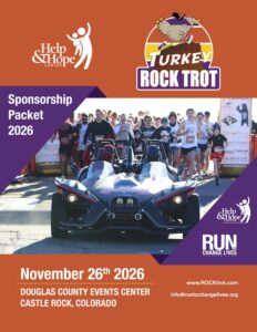 You are CHANGING LIVES with the Help&Hope Center when you register for the Turkey ROCK Trot. The Help&Hope Center provides assistance to our neighbors in Douglas and Elbert counties who are in serious economic need, at risk of homelessness, or in a similar crisis.